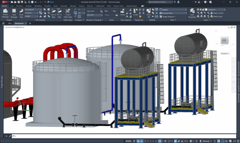 Vi arbejder i AutoCAD Plant 3D og Autodesk Inventor for at skabe alt fra rørledninger og procesudstyr til metalkonstruktioner og specialrammer.